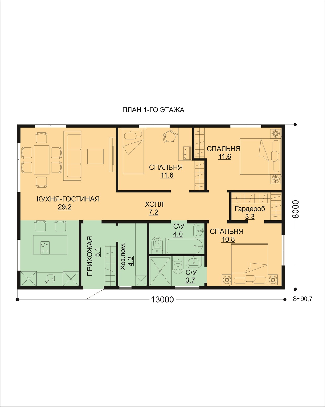 Площадь дома 90.7 м2 Цена дома 3 488 000 руб.