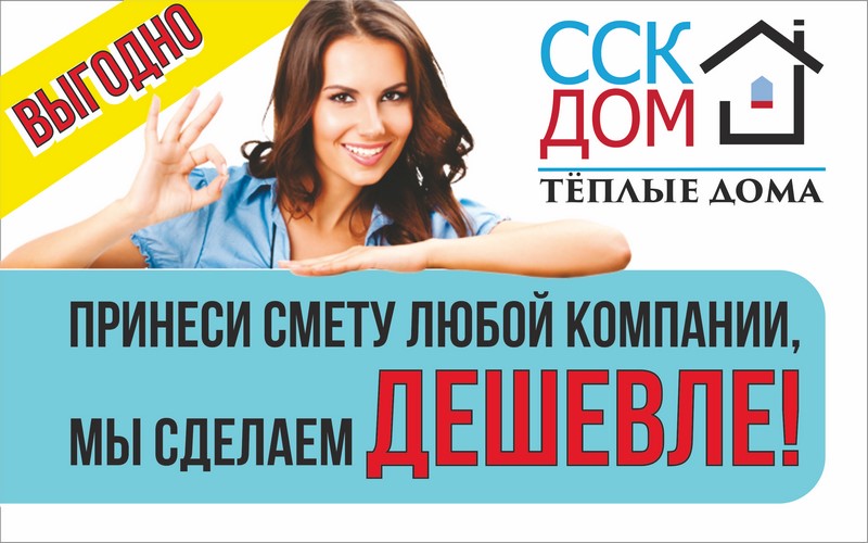 Например, Вы принесли смету расчёта дома на 1,5 млн. рублей, мы предлагаем построить данный дом на 50 000 рублей дешевле! При условии использования аналогичных материалов и характеристик дома.